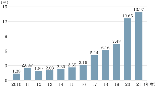 2011年度の割合は、岩手県、宮城県および福島県を除く全国の結果。
