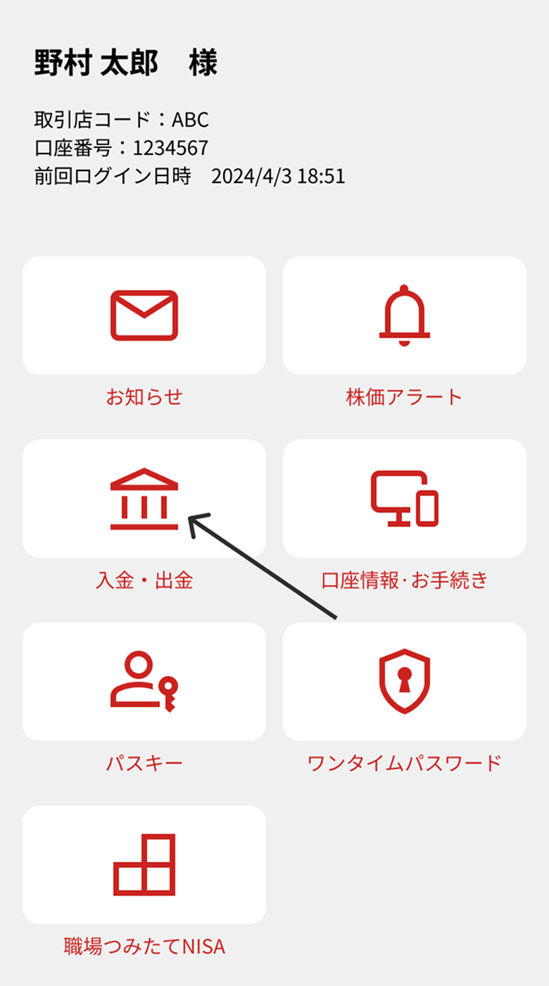 ③入出金画面に遷移します。