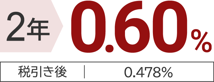 - ※上記税引き後の利率は、小数点第3位未満を切り捨てて表示しており、お受取利息には20.315%(国税15.315%、地方税5%)の税金(源泉分離課税)が課されます。