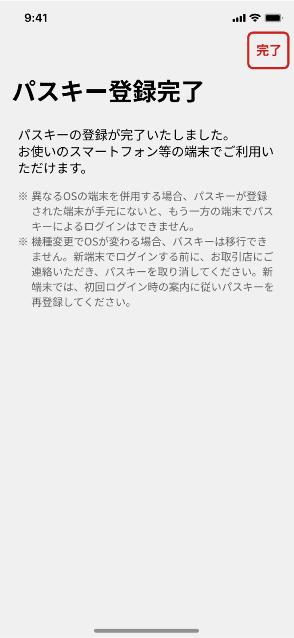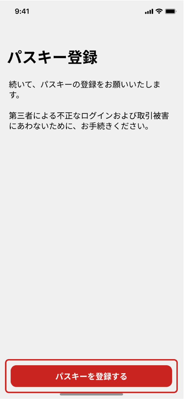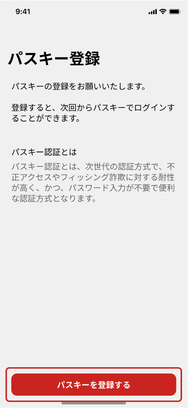 最後にパスキー登録です。「パスキーを登録する」ボタンをタップし、登録してください。