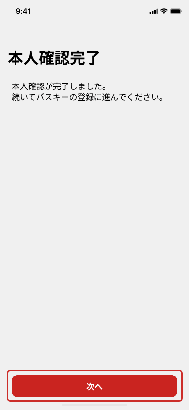 最後にパスキー登録です。「パスキーを登録する」ボタンをタップし、登録してください。