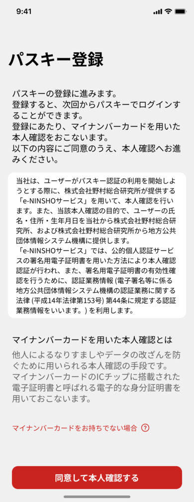 (すでにパスキー認証をご利用のお客様は、改めてマイナンバーカードを使って登録しなおす必要はございません)