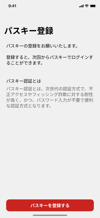 以下の流れに沿って、パスキーの登録をお願いします。