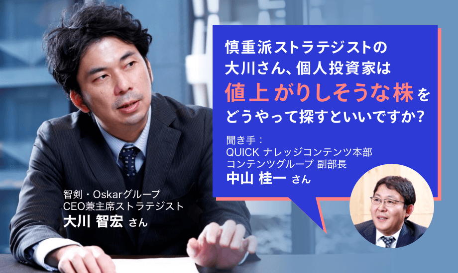 個人投資家が株式市場のなかで見落とされている優良銘柄を探すとしたら、どんな視点で探せばいいのでしょう。QUICKナレッジコンテンツ本部の中山桂一さんが、智剣・Oskarグループの主席ストラテジスト大川智宏さんに聞きました(対談日:2024年4月2日)。